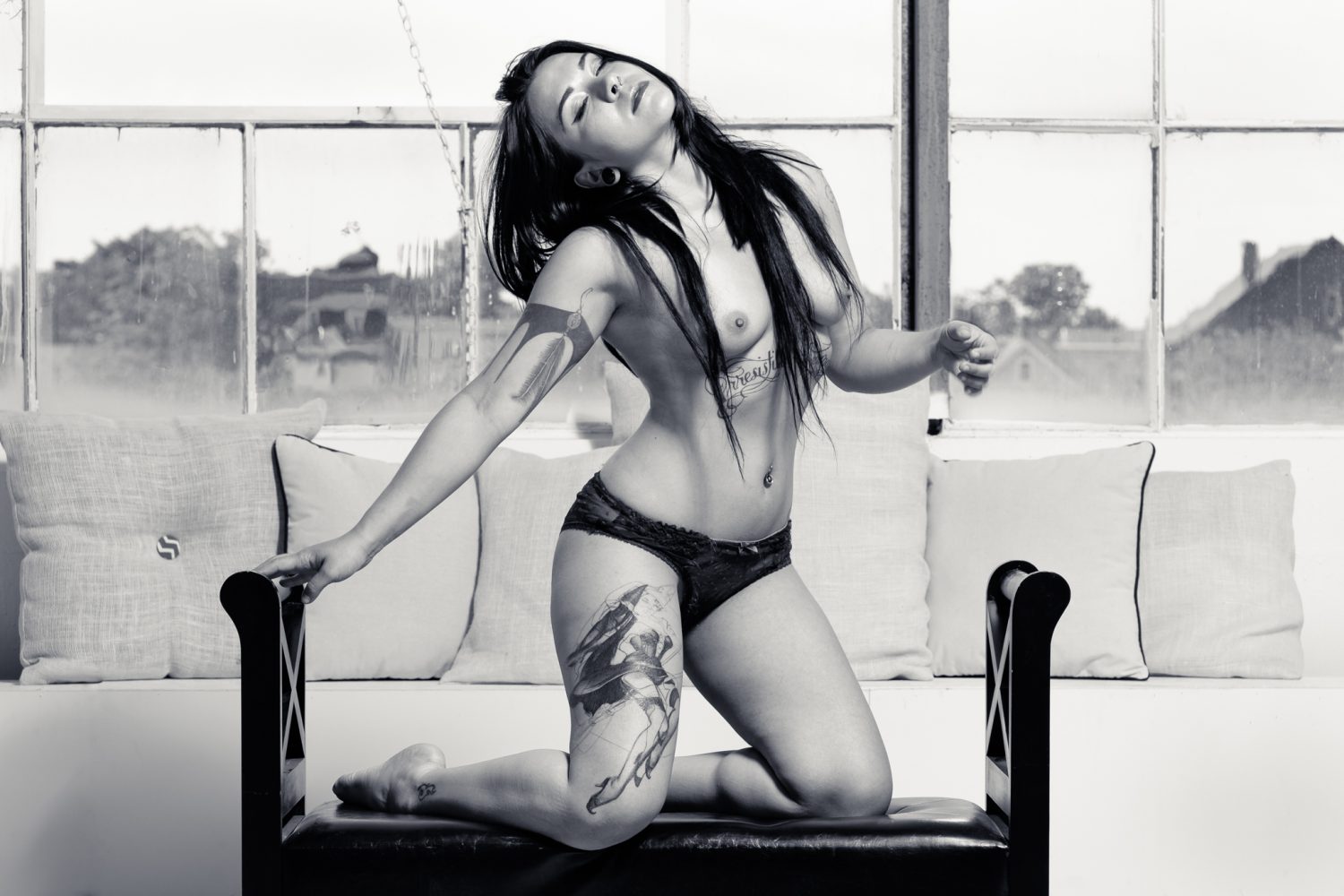 Rich is a fantastic artist I had worked with previously for an album cover for It’s Good to Be Rich.  He wanted some more promotional photos to represent his work and I was excited to work with him again.  Rich likes my style of photography, so he is really easy to work with!  He also coordinated with our fantastic model Flavia and arranged a loft space to use in Lawrence, MA.  All of this meant I pretty much just had to show up with my camera and lights – my favorite way to shoot.